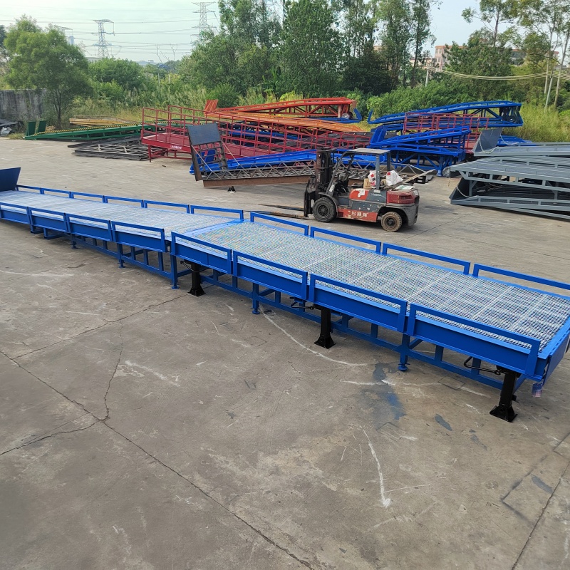 The hand-hydraulic loading dock ramp is operated by one person and does not require a power source for safe and fast loading and unloading of goods. Loading dock ramps are widely used in cargo platforms without loading and unloading equipment and mobile loading and unloading sites. It is a cargo handling auxiliary equipment used in conjunction with forklift trucks. The height can be adjusted according to the height of the compartment, and the panel steel bar is fully welded, which is strong and durable. Can lengthen the front platform